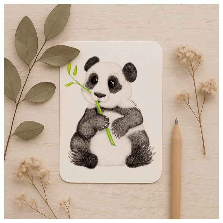 Kotimaisesta puuvärityöstä tehty panda postikortti perinteisessä kokoluokassa. Taustapuolella osoiterivistö. Kortissa on mattapinta ja pyöristetyt reunat. Halutessasi voit itse kirjoittaa juuri sinunlaisen tervehdyksen korttiin mattapinnan ansiosta.